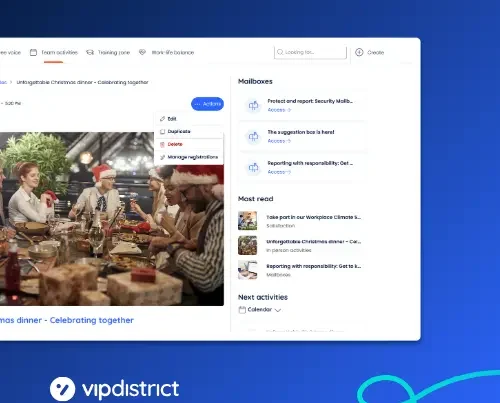 The Vip District tool not only facilitates communication within a company, but also helps to combat staff burnout and to strengthen employees’ sense of belonging. By allowing everyone to feel included and valued within the company, Vip Connect creates a healthier and more motivating work environment.