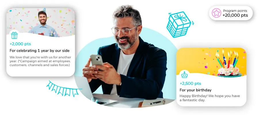 - Automate point allocation: Make your life easy with automations. Points for birthdays or company anniversaries, for example, can be automatically awarded and communicated. Everything runs smoothly, without a shred of management needed from you.