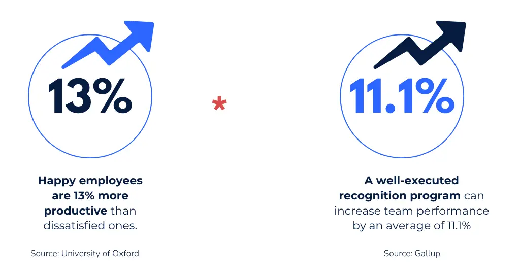 - A well-executed recognition programme can increase team performance by an average of 11.1%. (Gartner)