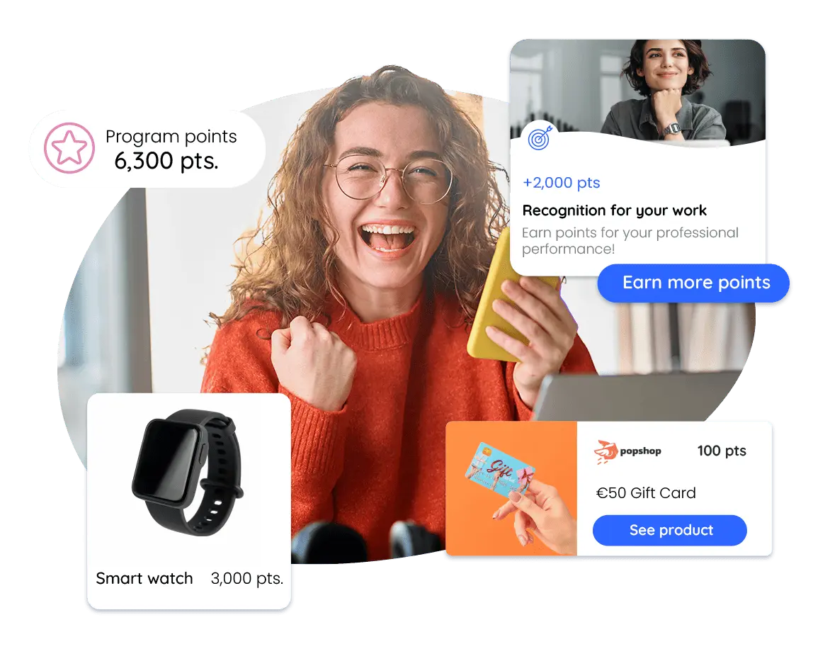 - A bespoke recognition platform: in the form of points or direct gifts.