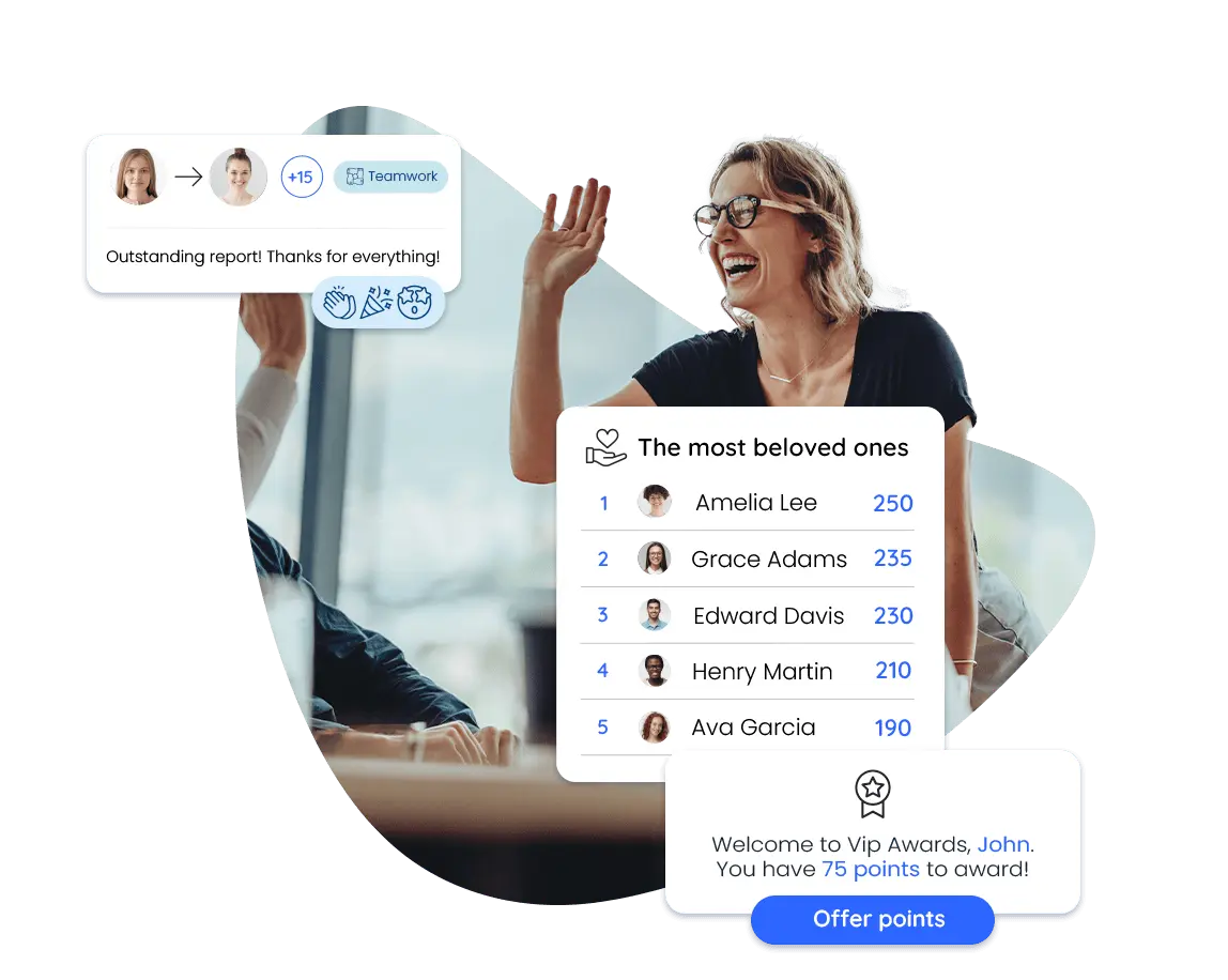 Make recognition everyone’s business: company and employees. With our platform, everyone gives positive feedback to anyone in the company.