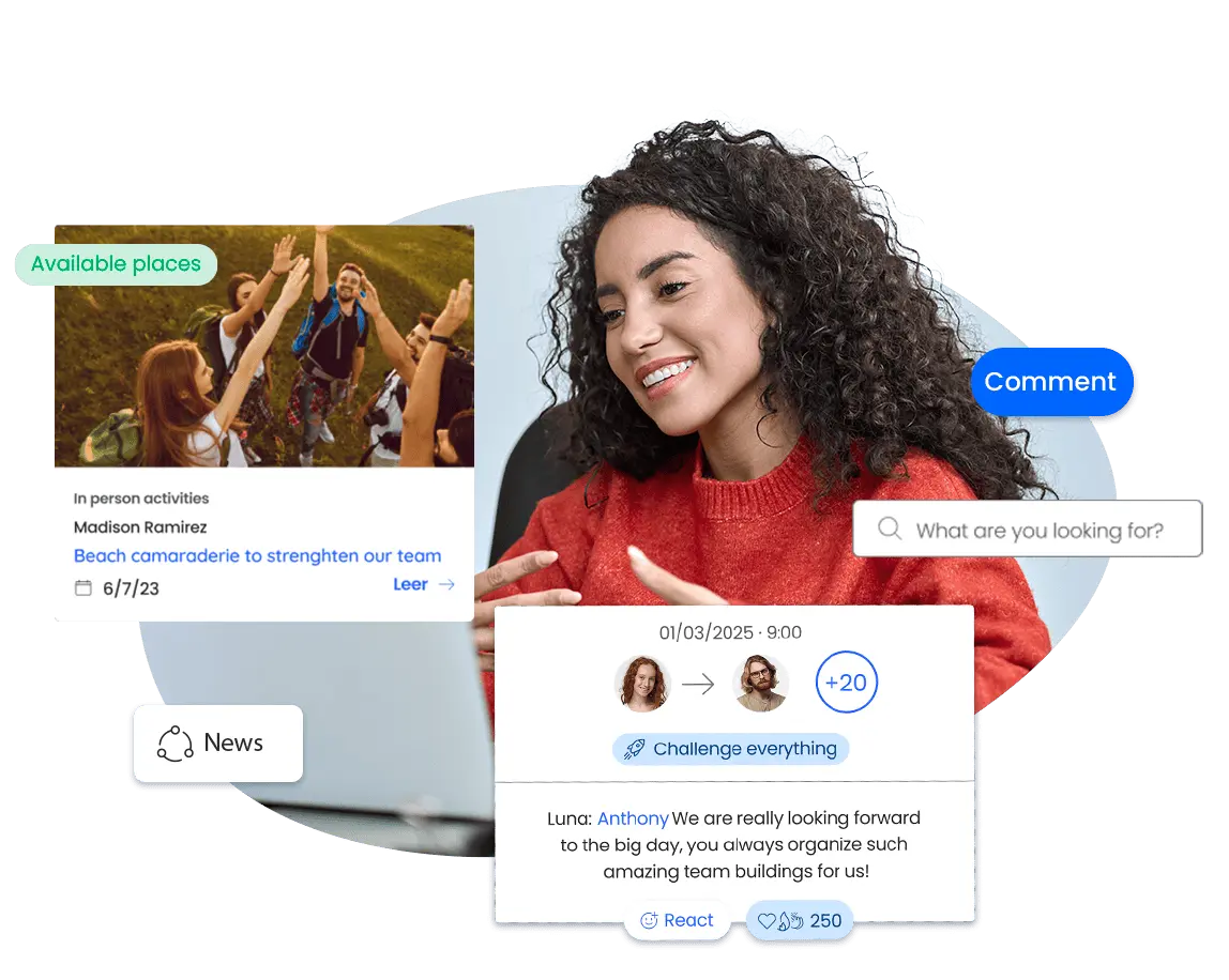 Create a unique space that will be the heart of the relationship with your employees. In addition to centralising your corporate communication, you can create and manage activities, training, surveys and customised communication channels.