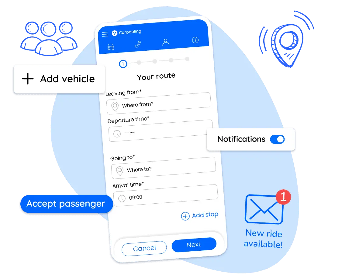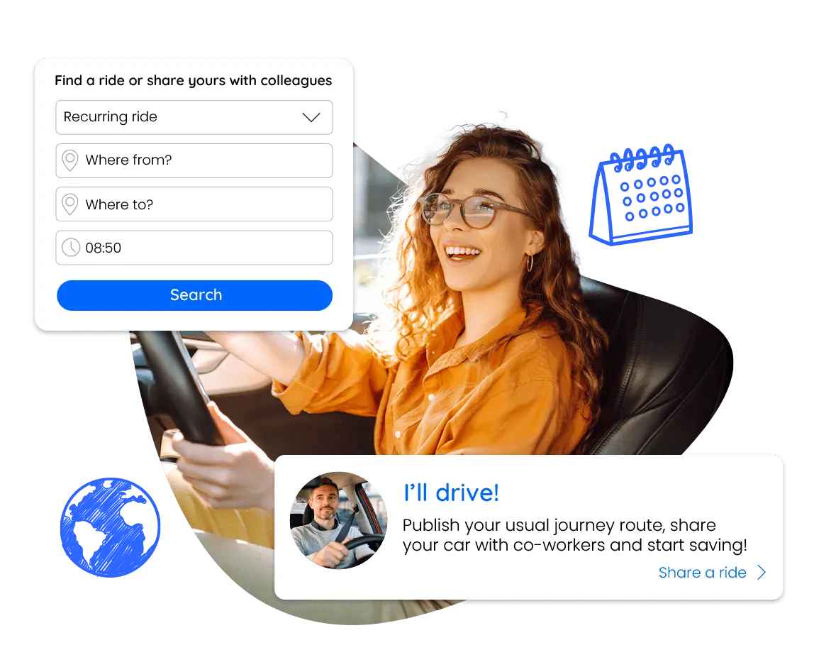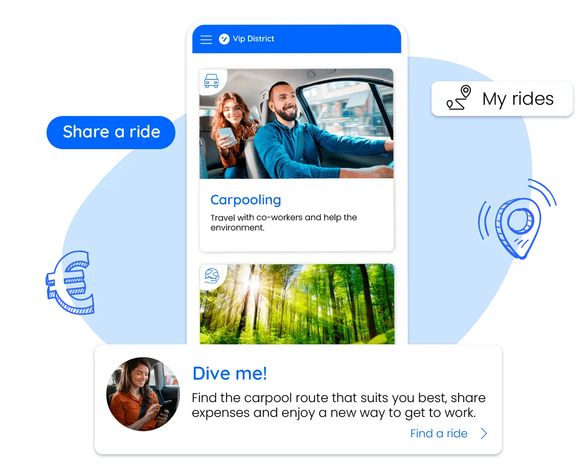 Help medewerkers om gemakkelijk en veilig naar het werk te reizen met een exclusief carpoolplatform!