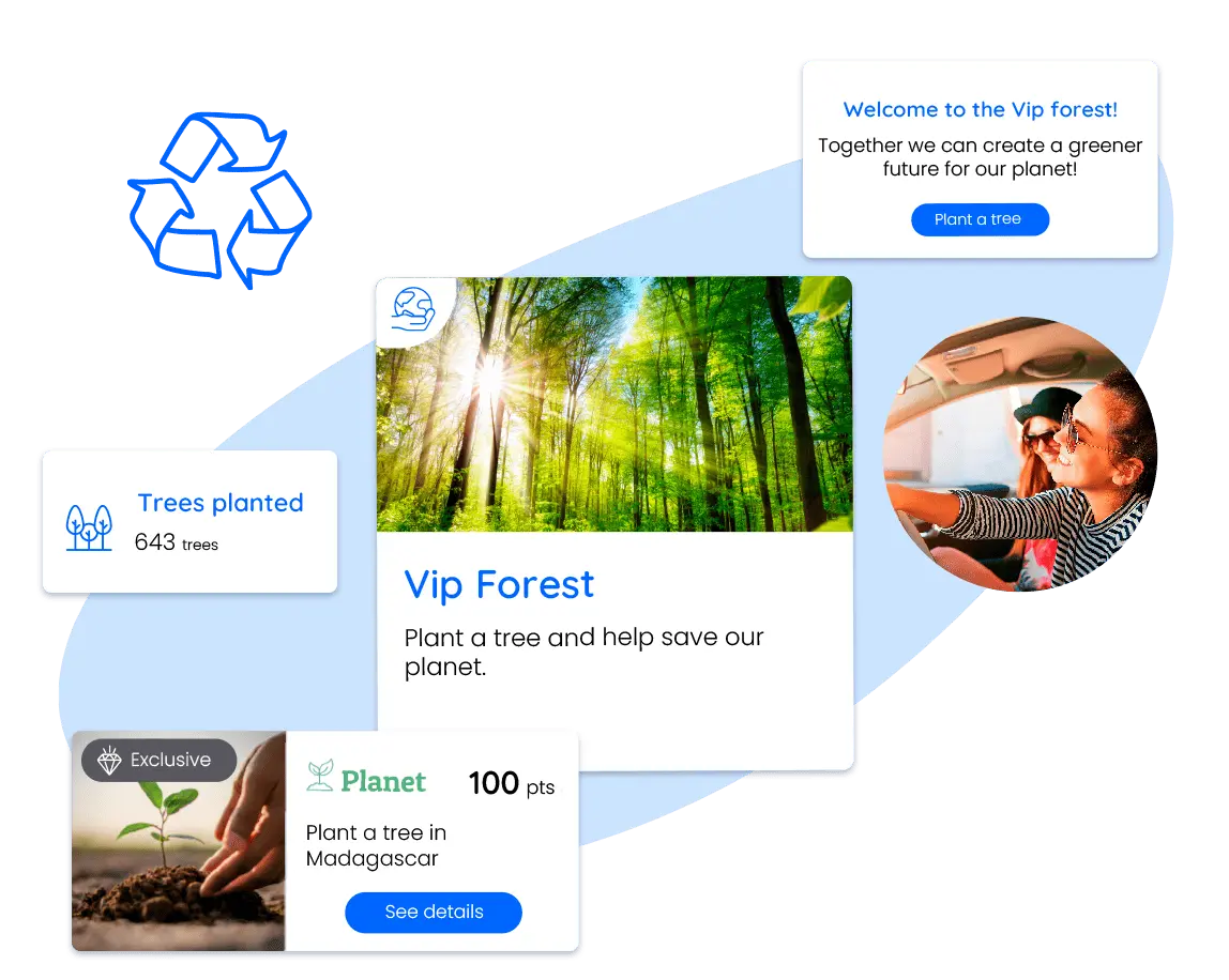 Waarom zet je geen verdere stappen in de richting van duurzaamheid en activeer je Vip Forest? Deze staat op ons beloningsplatform. Geef medewerkers en partners bomen cadeau en steun de wereldwijde CO2-compensatie.