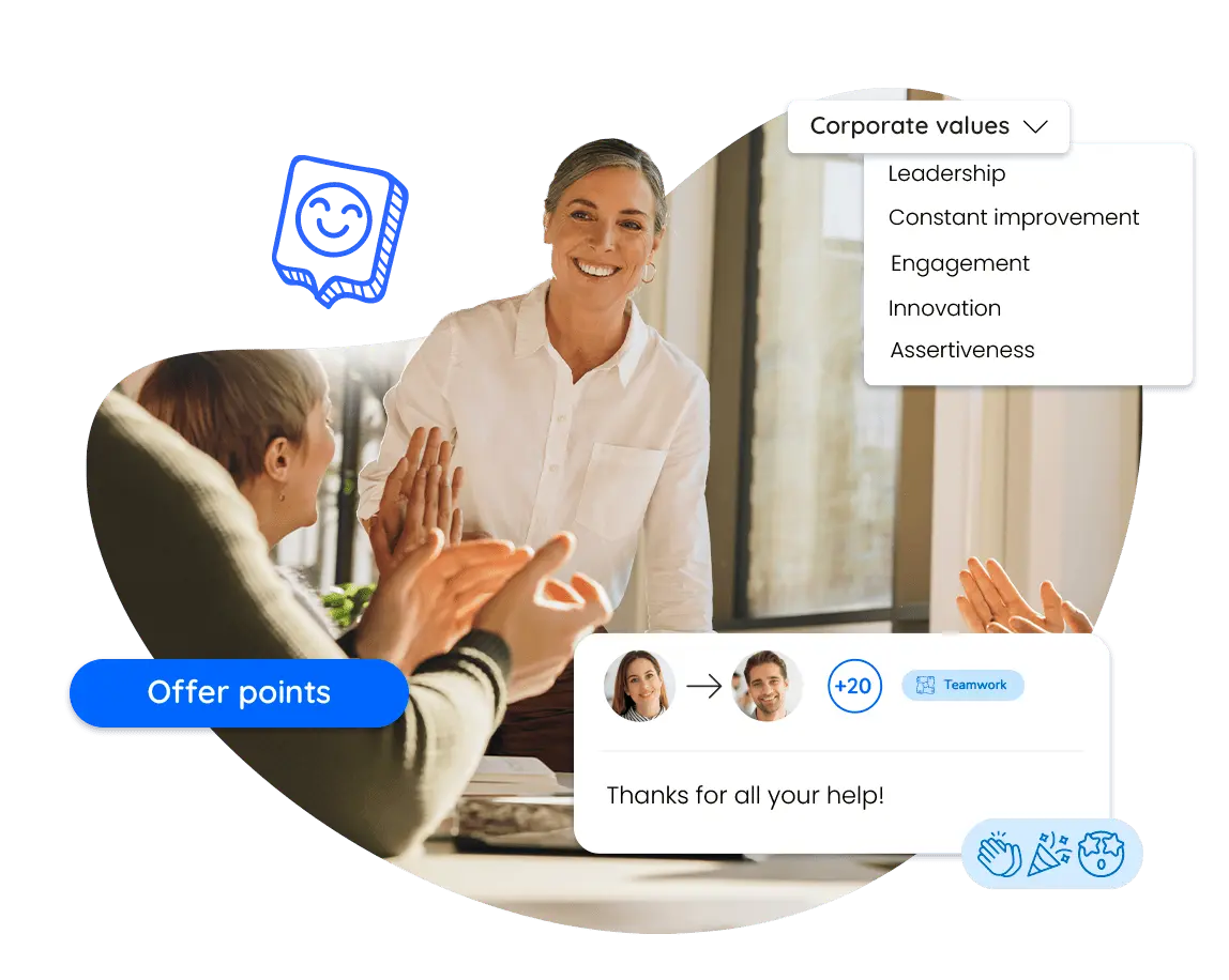 Nunca foi tão fácil dar feedback positivo! Atribua pontos e complemente-os com uma mensagem personalizada para agradecer, elogiar, felicitar ou simplesmente reconhecer os seus colegas de trabalho, de qualquer setor da empresa.
